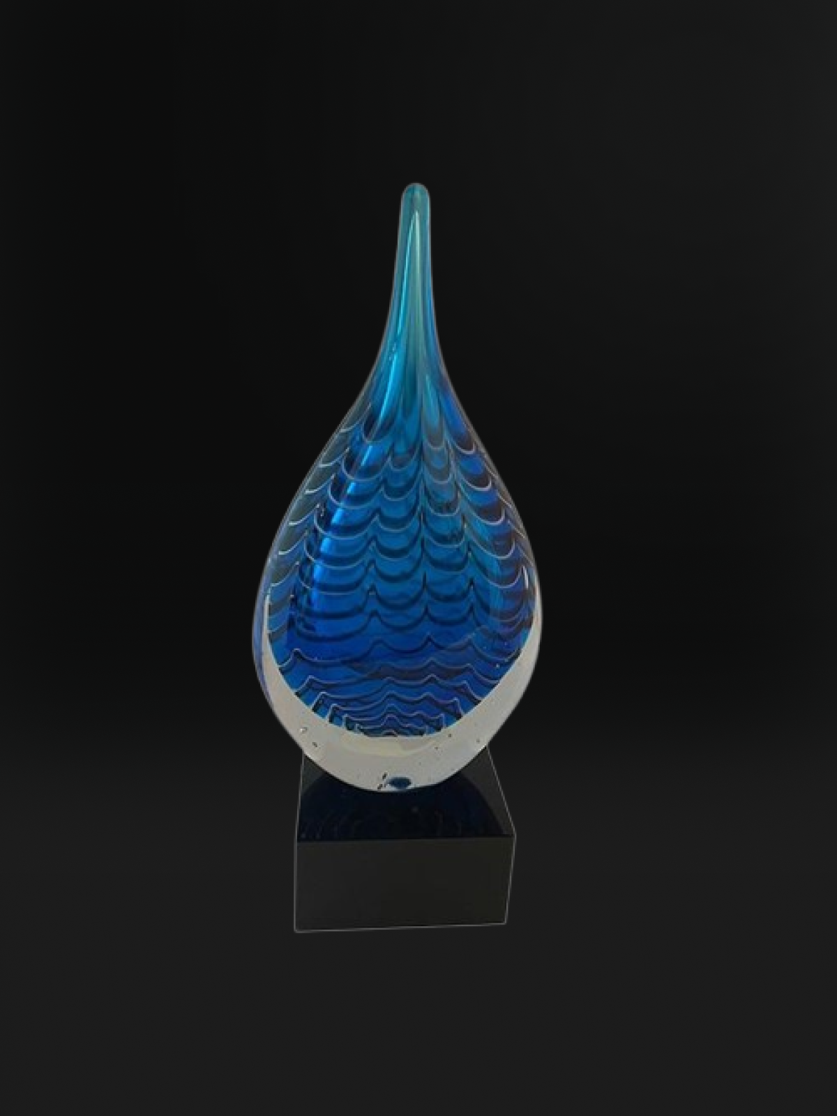 Elegant and mesmerizing, the Blue Flame Art Glass Sculpture adds a touch of sophistication to any space. Crafted from high-quality hand-blown glass, this piece features a striking teardrop shape with layered blue swirls that create a flame-like effect — a perfect symbol of inspiration, creativity, and passion.