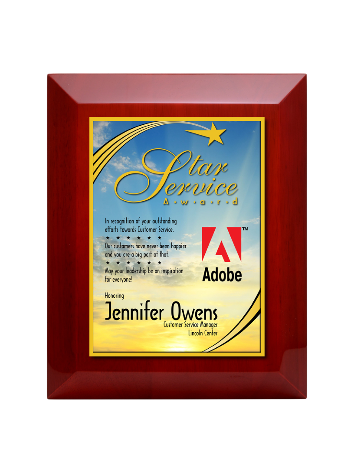 - Wide Beveled Edge: Adds depth and distinction to the plaque’s design.