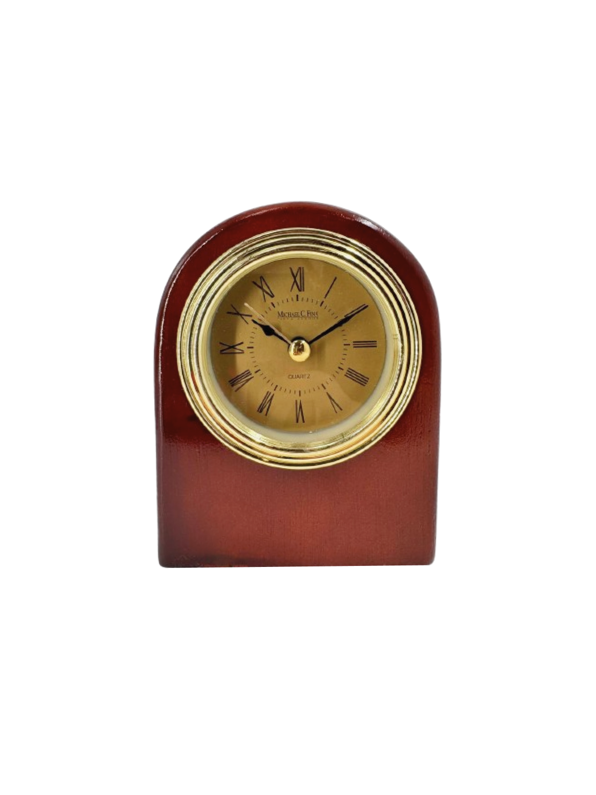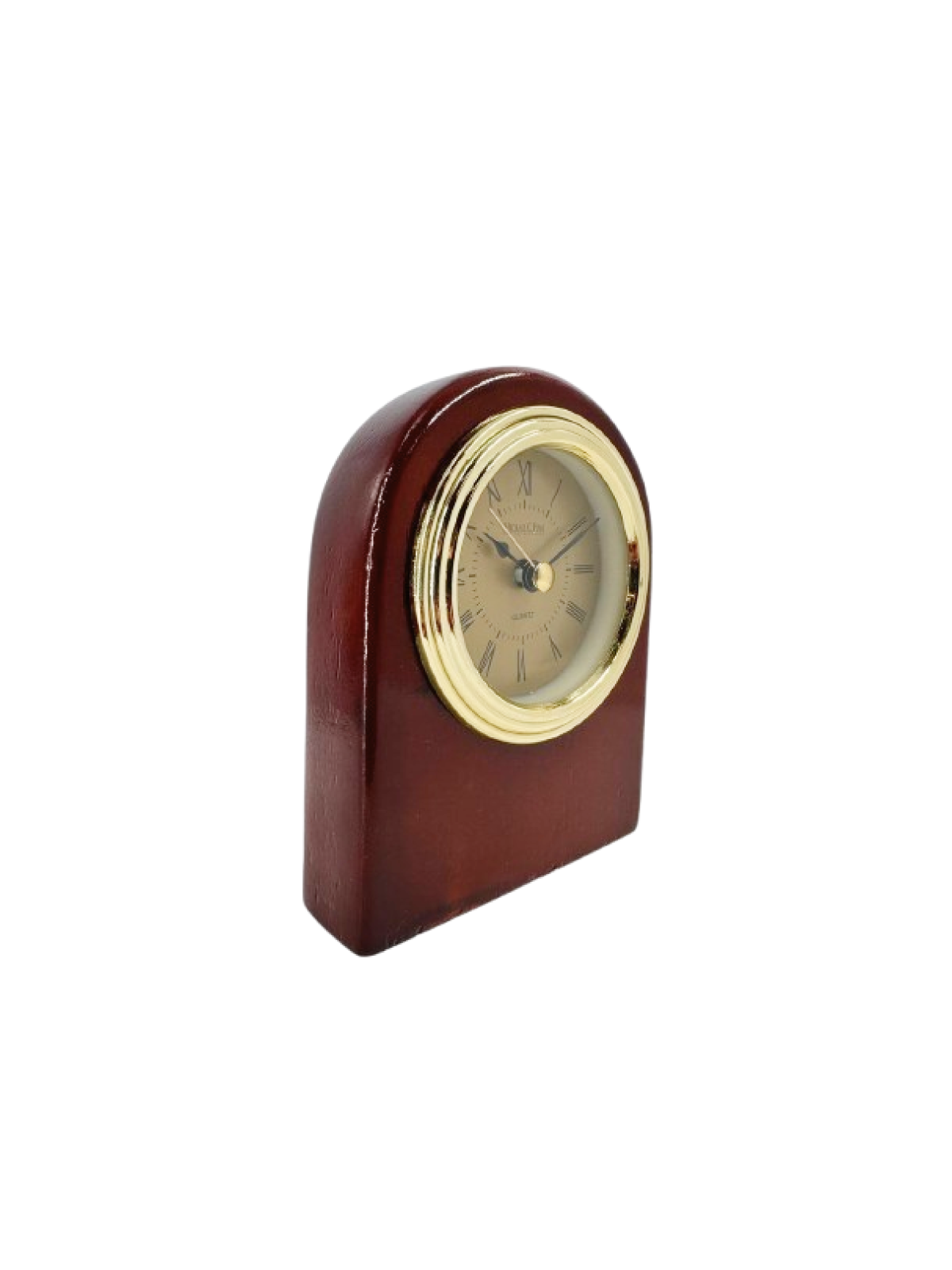Classic charm in a compact design — the Rosewood Arch Desk Clock blends timeless elegance with modern practicality. Featuring a smooth arch-shaped rosewood body and a gold-tone bezel surrounding a Roman numeral clock face, this piece adds a refined touch to any office or home setting.